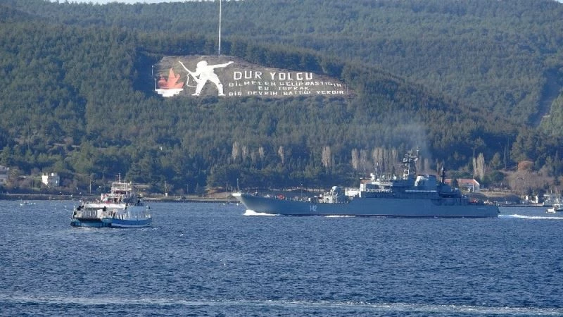 Rus donanmasına ait 142 borda numaralı ’Novocherkassk’ adlı savaş gemisi, Türk sahil güvenlik botu refakatinde Çanakkale Boğazı’ndan geçerek Akdeniz’e doğru yol aldı.