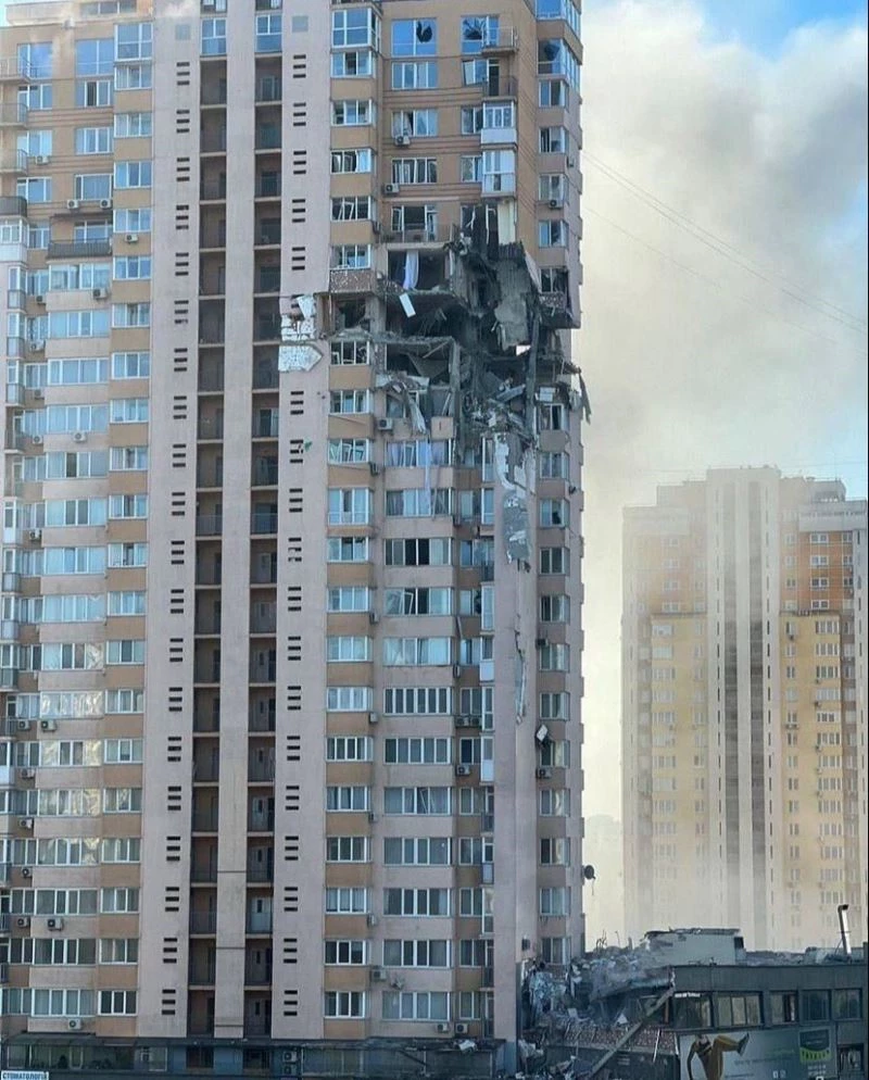 Kiev’de sivillerin yaşadığı binaya bomba düştü.