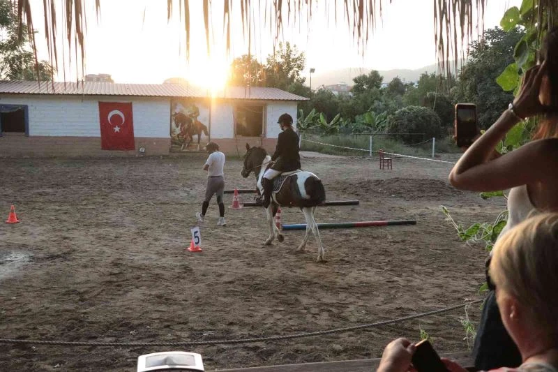 Antalya’da yerleşik yaşayan Rusya uyruklu 6-14 yaş aralığındaki çocuklar başlangıç seviyesindeki binicilik yarışması birbirleriyle yarıştı.