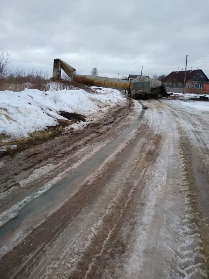 Rusya’nın Oleninsky bölgesindeki Kholmina kasabasında eski bir su kulesinin kontrollü yıkımı sırasında beklenmedik bir olay yaşandı. Halatlarla bağlanan su kulesi yıkım işlemi sırasında işçi servisinin üzerine devrildi. İşçilerin yaralanmadığı olayda, minibüsün kullanılamaz hale geldiği belirtildi.