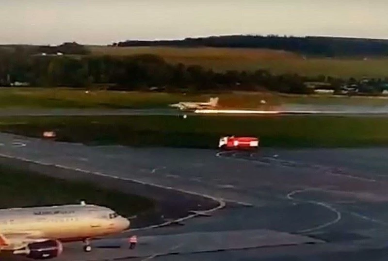 Rusya’da iniş takımlarındaki bir tekeri kopan savaş uçağı havaalanına acil iniş yaptığı sırada büyük korku yaşandı.