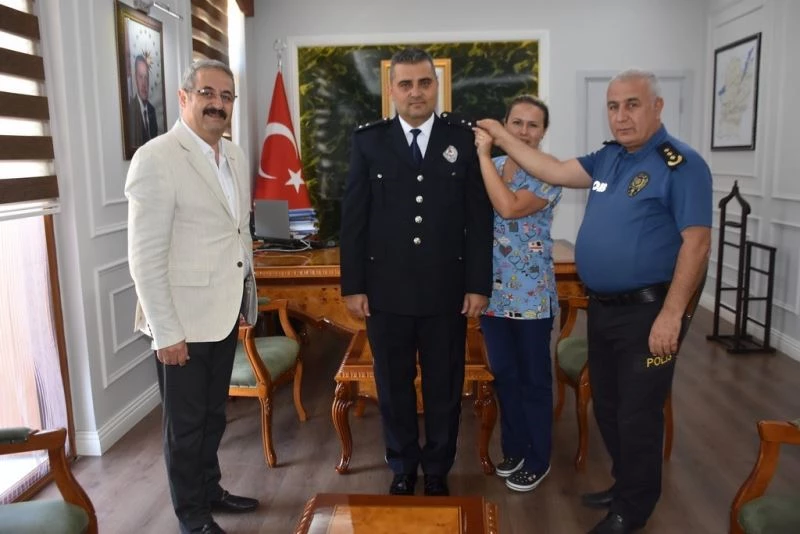 Eşi Günnur Aydoğdu’nun da yer aldığı törende Komiser Aydoğdu ise bir üst rütbeye yükselmenin mutluluğu ve heyecanını yaşadı.