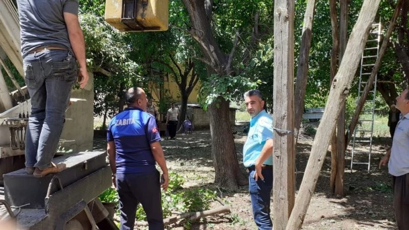 Şevkiye Mahallesi Avşin Sokak’ta bir evin bahçesinde bulunan dut ağacının yan yatması üzerine ev sahibi Osman Mican, Kozan Belediyesi Park Bahçeler Müdürlüğü ekiplerine haber vererek yardım talep etti. Ekipler kesim yaparak olası faciayı önledi.