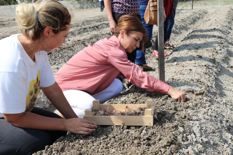 Yazıköy’de, Safranbolu Belediyesine ait seraların olduğu bölgeye yakın alanda, boya, kozmetik, ilaç ve gıda gibi birçok alanda kullanılan safranı toprakla buluşturuldu.
