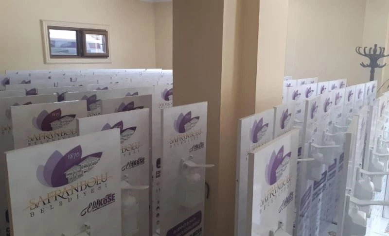 Karabük’ün Safranbolu ilçesinde belediye ekipleri vatandaşların yoğun olarak bulunduğu mekanlar için 120 adet dezenfektan standı üretildi.