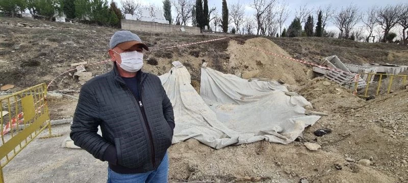 Safranbolu Mezarlığında görevli mezar ustası Adnan Şen, 32 yıldır mezar işi yaptığını ve bugüne kadar kazılan mezar yerlerinden doğal normal kesme yerli taşların çıktığını ifade etti.
