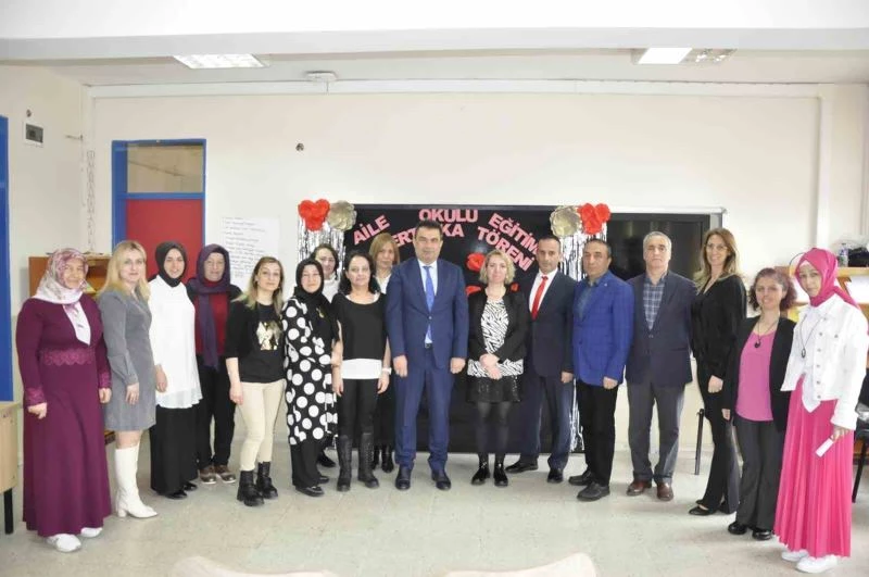 Bağlar Şehit Atilla Bodur İlkokulu’nda "Aile Okulu" eğitimlerini başarı ile tamamlayan velilere katılım belgeleri törenle takdim edildi. Program sonrası velilerle sohbet eden İlçe Milli Eğitim Müdürü Hasan Gümüş, velilerin "Aile Okulu" projesiyle ilgili düşüncelerini ve beklentilerini dinledi.