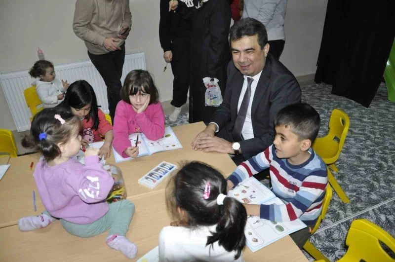 Kahramanmaraş merkezli 11 ili etkileyen depremin ardından Karabük’ün Safranbolu ilçesine getirilen depremzede ailelerin çocuklarına psikososyal destek veriliyor.