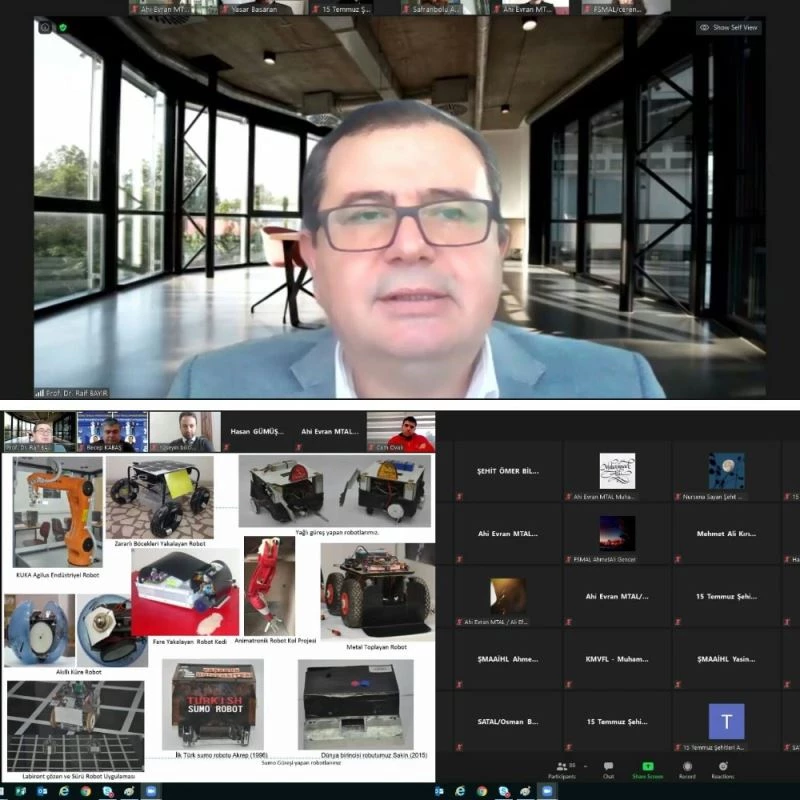 Seminerde sunum yapan Prof. Dr. Bayır; Robot Teknolojileri Uygulama ve Araştırma Merkezi’nin çalışmaları ve başarıları, robot teknolojilerinin tarihsel gelişimi, robot teknolojilerinde dünyadaki son durum, yapay zeka, türleri, temel özellikleri, yapay zekanın kullanım alanları ve geleceği konularında bilgiler verdi.
