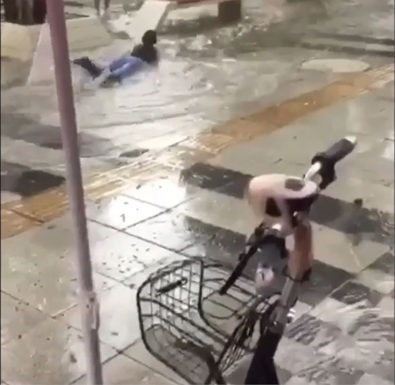 KIRKLARELİ (İHA) – Kırklareli’nde şiddetli yağışın göle çevirdiği caddede bir vatandaşın kulaç atarak yüzmeye çalıştığı anlar ilginç görüntüler oluşturdu.