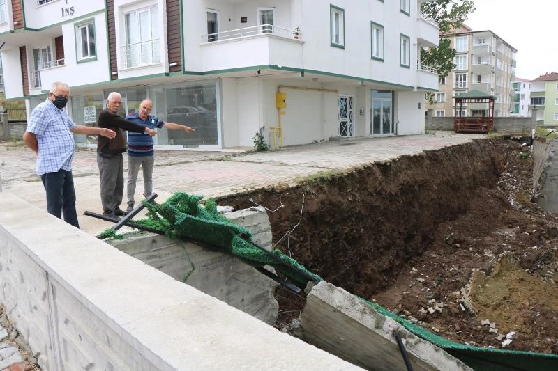 Sağanak yağış 5 katlı apartmanın istinat duvarını yıktı