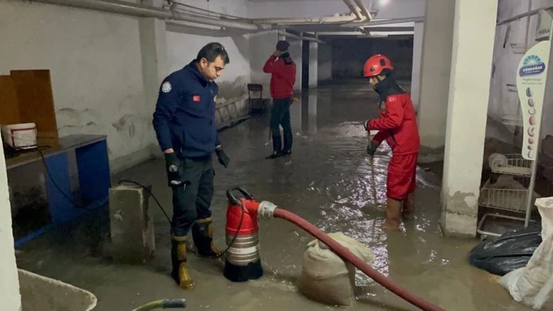 Sağanak yağış sonrası apartman garajına biriken 50 ton su tahliye edildi