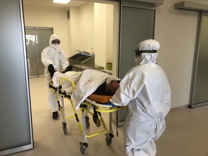Bakan Koca sosyal medya hesabından yaptığı paylaşımda, “Paylaştığım fotoğraf, günceldir. Bugün ziyaret ettiğimiz ve sadece COVID-19 hastalarının kabul edildiği Prof. Dr. Feriha Öz Acil Durum Hastanesi’nde çekilmiştir” ifadelerini kullandı.