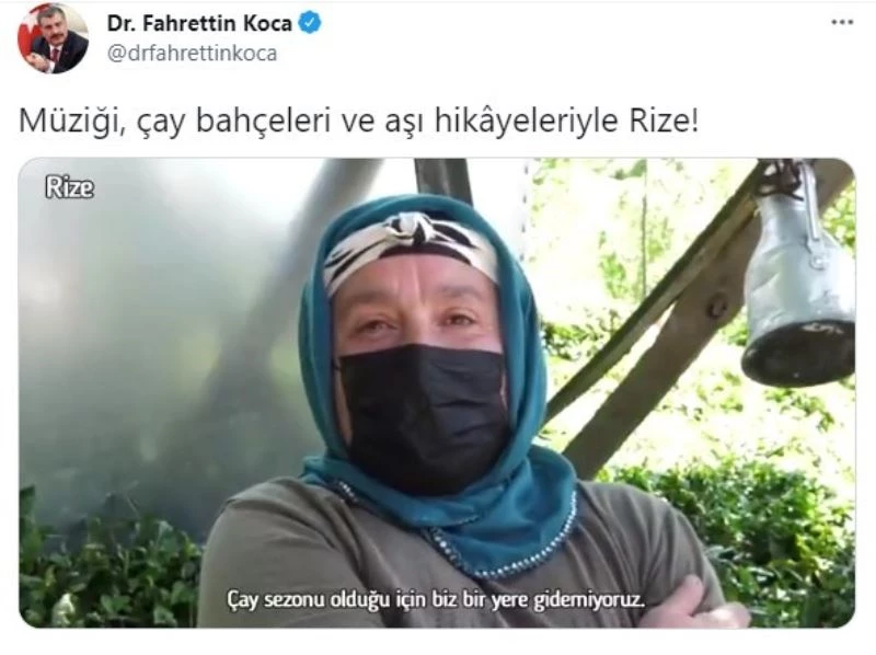 Sağlık Bakanı Fahrettin Koca, sosyal medya hesabından Rize’de ekiplerin aşı serüvenin yer aldığı bir video paylaştı.