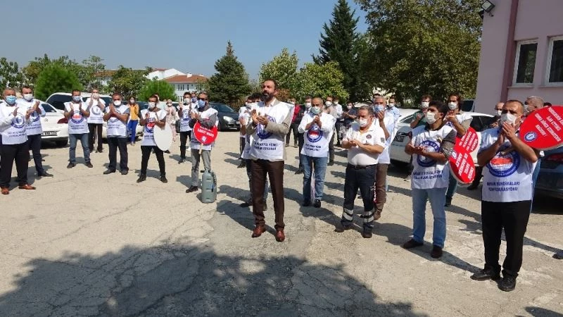 Bursa’da sağlık çalışanları ek ödeme yönetmeliğini protesto etti. Salgın döneminin başında özverili çalışmalarından dolayı vatandaşlar gibi devlet erkanı tarafından 3 gün süreyle alkışlanan sağlık çalışanları, haklarının alkış olmadığını dile getirdi. Hükümet çalışanlarına yaptıkları alkışı 3 dakika aralıksız alkışlayarak iade eden sağlık çalışanları, takdir olarak alkış değil alın terlerinin karşılığını istediklerini dile getirdi. Basın açıklamasına Ankara Keçiören Eğitim ve Araştırma Hastanesinde yaşanan şiddet olayını gerçekleştirenlerini kınayarak başlayan Memur-Sen Bursa İl Temsilcisi ve Sağlık-Sen Şube Başkanı Gökan Yünkül, “Sağlıkta şiddet olaylarına karşı caydırıcı tedbirlerin hayata geçmesi için bir kez daha başta Adalet Bakanlığı olmak üzere, İçişleri Bakanlığı’na ve Sağlık Bakanlığı’na çağrıda bulunuyoruz. Toplumun tüm kesimlerine şiddete karşı sıfır tolerans göstermesi için çağrıda bulunuyoruz. Salgının hız kesmesini beklerken maalesef süreç her gün daha kötüye gidiyor, vaka sayıları ve ölüm sayıları da artış göstermeye devam ediyor. Bu olumsuz süreci Sağlık Bakanlığımızın uyarılarına uyarak atlatabileceğimizi de ifade etmek istiyorum. Bizler sağlık personeli olarak bu salgın sürecinde şüphesiz ki hayati önem taşıyan bir görev icra ediyoruz. Bugüne kadar sağlık çalışanları açısından zaten var olan bulaşıcı hastalık riski bu defa daha büyük bir risk haline gelmiş, bu süreçte yüzlerce arkadaşımız bu hastalığa yakalanmış ve maalesef birçok sağlık çalışanı arkadaşımız şehit olmuştur. Bu özverili çalışmaları sadece bugüne ait olmayan sağlık çalışanlarımız her daim büyük bir övgüyü de hak etmektedir. Nitekim bu övgü halkımızın ve devlet erkanının sağlık çalışanlarını alkışlaması ile de ortaya konmuştur” dedi.