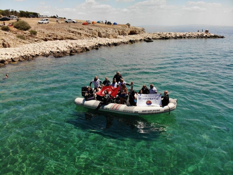 Dr. Nihal Kasapçopur ise, “Bu dalış, bir kez daha meslektaşlarım ve tüm sağlık çalışanlarıyla gurur duymamı sağladı. Dalgıçların duyarlılığı ile hazırlanan bu pankart bizler için en anlamlı teşekkürlerden biri oldu. Doğanın derin sessizliğinde bile hatırlanmak güzel” diye konuştu.