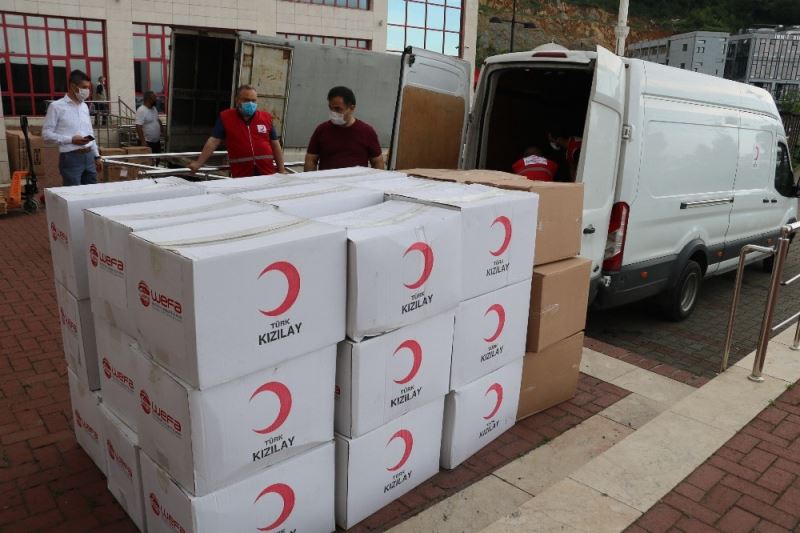 Türk Kızılayı’nın 152. kuruluş yıl dönümü kapsamında Zonguldak BEÜ Sağlık Uygulama ve Araştınma Merkezi’nde görevli sağlık çalışanlarına 60 bin koruyucu ekipman hibe edildi. Koruyucu gözlük, maske, tulum, dezenfektan gibi çeşitli eşyaların bulunduğu koliler, gönüllü Kızılay ekipleri tarafından hastane önünde getirildi. Kızılay Şube Başkanı Aydın Ergenç tarafından BEÜ Sağlık Uygulama ve Araştırma Merkezi Müdür Yardımcısı Prof. Burak Bahadır’a teslim edildi.