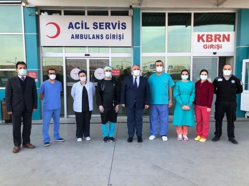 Devlet Hastanesi Başhekimi Kalendar Durmaz, “Kaymakamımıza, belediye başkanımıza, sayın ilçe protokolüne bize bu pandemi sürecinde yaptıkları desteklerden dolayı teşekkür ediyorum. Vatandaşlarımızın da Sağlık Bakanlığı’nın önerileri doğrultusunda maske, mesafe, hijyen kurallarına uymalarını ve bize destek olmalarını diliyorum” dedi.