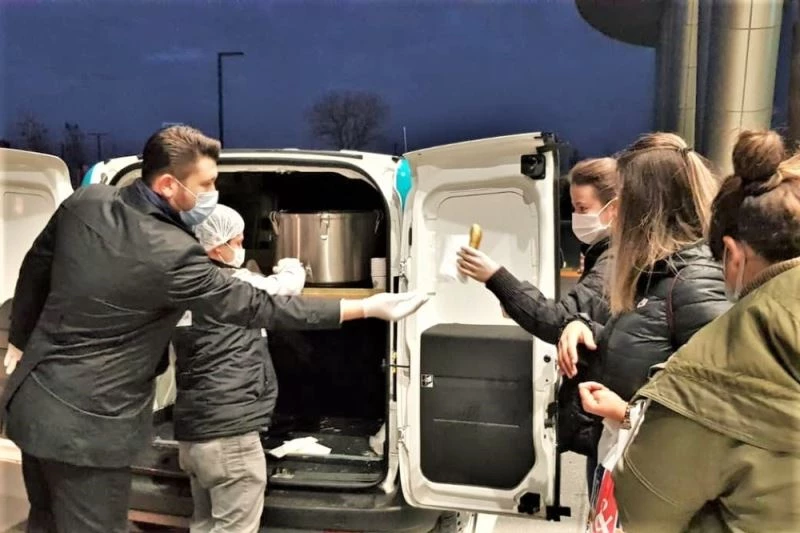 Sağlık çalışanlarına sıcak çorba ve simit ikramı