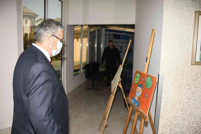 Kaymakam Gemici, Başkan Topaloğlu ve beraberindekiler, sağlık çalışanlarına yönelik şiddetin önlenmesi, saygı ve sevgi farkındalığının artırılması amacıyla yapılan resim yarışmasına katılan öğrencilerin resimlerini tek tek inceledi.