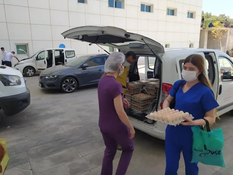 Muğla’nın Milas ilçesinde ikamet eden bir vatandaş tarafından, pandemi döneminde yoğun bir çalışma temposuna giren sağlık çalışanlarına 2 bin adet yumurta hediye edildi