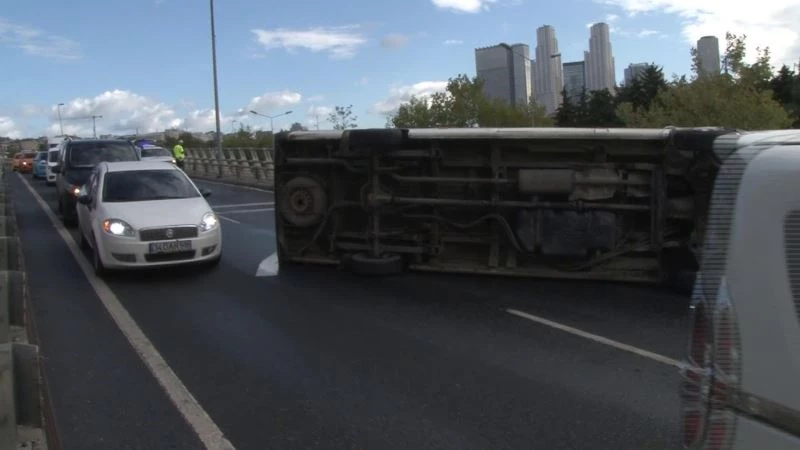 Beyoğlu’nda sağlık çalışanlarını taşıyan minibüsü yan yattı. Kazada yaralanan olmadı.