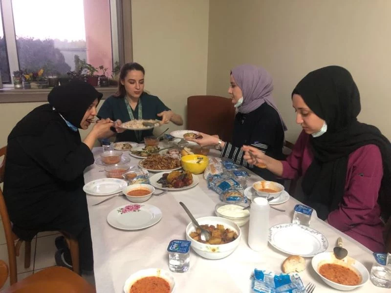 Ramazan ayında çalışma zorluklarını anlatan Genel Cerrahi Servisi Sorumlu hemşiresi Arzu Altın, “Ramazan ayında da biz verdiğimiz hizmeti normal olarak vermeye devam ediyoruz. Biliyorsunuz sağlık hizmeti 7/24 devam eden bir süreç bizim için. Cerrahi bir servisteyiz biz. Bizim servisimizde işler sürekli olarak devam etmekte. Şu an devam eden ameliyatlarımız var mesela hocalarımız var içeride. Biz hastaları devir almadan önce arkadaşlarımızdan müsait olanlar. Birbirlerine devir usulü ile iftarlarını yaptılar. Diğeri ise hastalarının bakımlarını yapıp kendi arkadaşları dönünce alanlarına gelip iftarların açıyorlar. Pandemi ile birlikte biz artık daha da yoğun çalışmaya başladık. Ve bu süreç üzerine Ramazan’da eklenince biraz daha yoğun geçiyor. Ama her şeyin üstesinden bir şekilde geliyoruz. Aktif çalışmayla, öz veri ile her şey daha iyi ilerliyor bizim için. İnşallah pandeminin azaldığı daha güzel zamanlarda çalışmak dileği ile” şeklinde konuştu.
