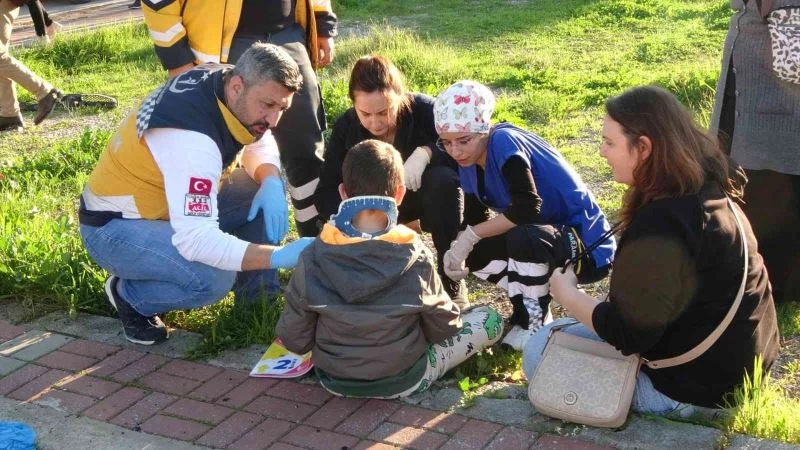 Devrilen otomobilde yolcu olarak bulunan ve başını aracın camına çarptığı bildirilen Ali Erbektaş (7), olay yerine gelen sağlık ekiplerinin hastaneye gitme teklifini kabul etmedi. Korktuğunu söyleyen küçük çocuk, sağlık ekibinin ve annesinin uzun süren çabaları sonucunda annesiyle birlikte ambulansa binerken, hastaneye götürülerek kontrolden geçirildi.