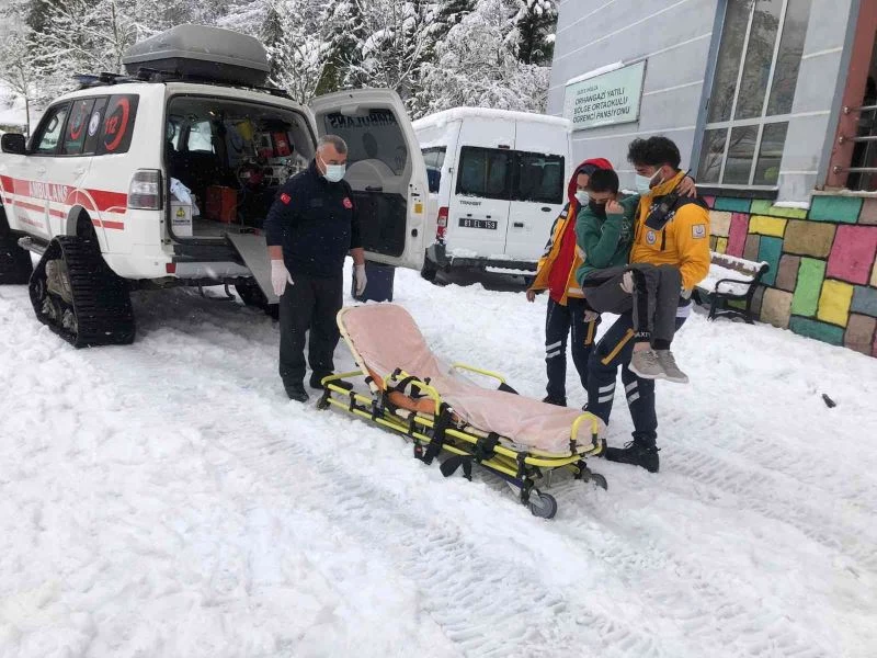 Yığılca ilçesinde Orhangazi Yatılı Ortaokulu’nda öğrenci olan 13 yaşındaki M.Z., yüksek ateş sebebiyle 112’den yardım istedi. Yoğun kar yağışı nedeniyle ulaşımın zorlukla verilebildiği bölgeye paletli ambulans ile ulaşan sağlık ekipleri tarafından ilk müdahalesi yapılan ortaokul öğrencisi M.Z., daha sonra sağlık ekipleri tarafından paletli ambulans ile Yığılca Devlet Hastanesine sevk edildi.