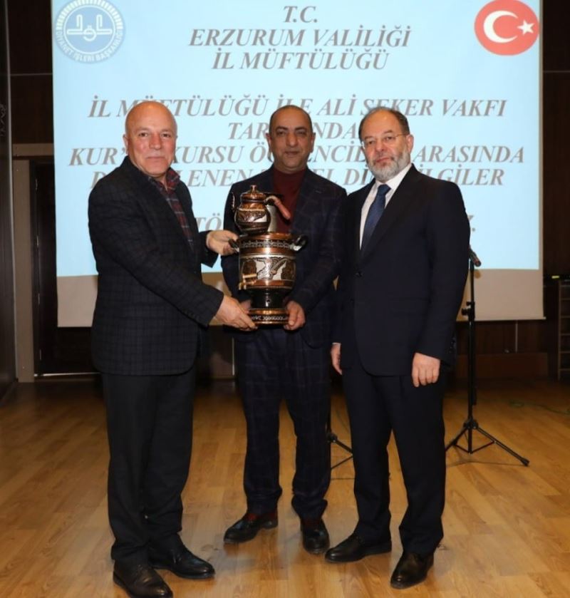 “Cenabı Haktan kendisine rahmet diliyorum. Hani diyoruz ya Ali Şeker’i kaybettik diye. Kaybedecek bir şek yok aslında. Ali Şeker kardeşimiz hem gönlümüzde yaşıyor, hem de yardımsever kişi olarak yaptığı yardımlar Sadaka-i Cariyedir. Tekmanlı bir kardeşimiz. 32 yıl önce Konya’ya gitmiş, hamallık yapan bir şerefli babanı oğludur. Konya’da ve Gaziantep’te özellikle hayvancılıkla ilgili tesisleri var. Erzurum’a ne yapabilirim düşüncesi içerisinde olan bir kişiydi. Tekman merkezde ve köylerinde kız kuran kursları yaptı. Yaptığı bu kursları Diyanet İşlerine devretti. Onu yaptığı kurslardan bu güne kadar 12 bin öğrenci bu kurslardan hizmet aldı. Çok sayıda hafızlar yetişti. Örnek alınacak bir kişiydi. Ortaya koyduğu model örnek alınacak modeldir. Harbi, delikanlı bir Dadaştı. Allah rahmet etsin. “