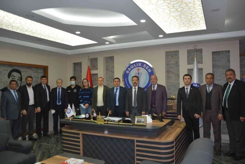 Sağlık-Sen Gaziantep Şube Başkanı Mehmet Ali Arayıcı, şube yönetim kurulu üyelerinin de hazır bulunduğu toplantıda İl Sağlık Müdürü Ümit Mutlu Tiryaki ve beraberindekiler ile ziyaretlerinden dolayı teşekkür etti. Tiryaki’nin vatandaşların sağlık hizmetlerine ulaşımının kolaylaştırılması ve sağlık çalışanlarının çalışma şartlarının iyileştirilmesi açısından yaptığı başarılı çalışmalar yaptığını ifade eden Başkan Arayıcı, “Sağlık ekip işidir. Başarı için huzurlu çalışma ortamı ve ekip ruhu gereklidir. Sağlık Müdürümüz de ekibi ile birlikte Gaziantep için gecesini gündüzüne katarak çalışmaktadır. Sayın Müdürümüz göreve geldiği ilk günden itibaren sürekli sahada, sağlık çalışanları ile omuz omuza vererek ekip çalışmasının en güzel örneğini sergilemektedir” dedi. Başkan Arayıcı, ise konuşmasında şunları dile getirdi:
