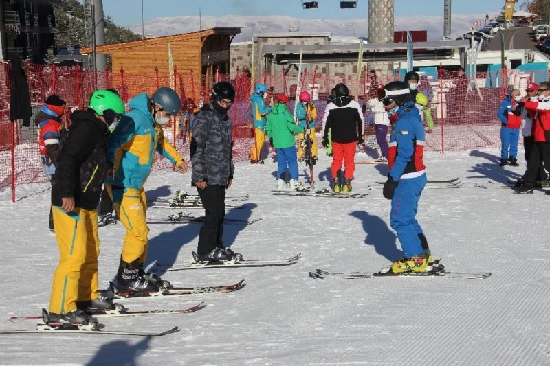 Sağlıkçılara motivasyon için kayak kursu düzenlendi
