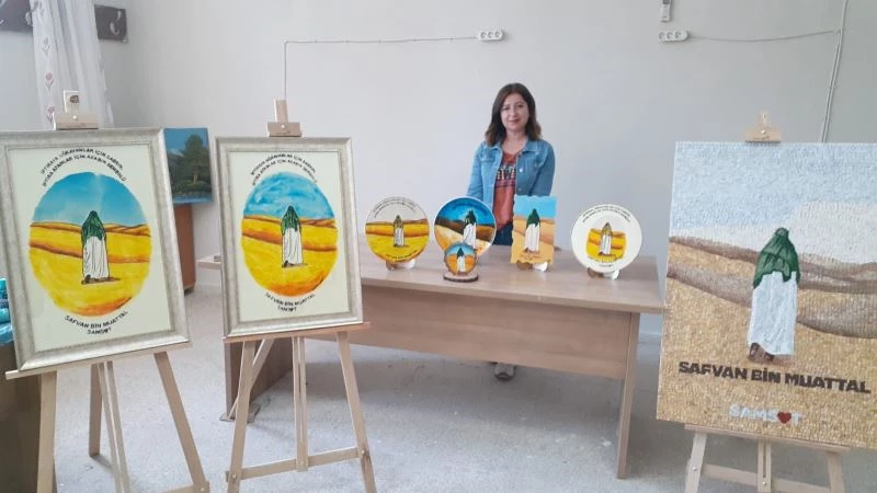 Sanat Tasarım Kursu Öğretmeni Yeter Yıldız tarafından yapılan sahabe figürünün işlendiği mozaik çalışması, cam vitray, porselen tabak, ahşap ile porselen kupa bardaklar yapılarak sahabenin yurt genelinde tanınmasına katkı sağlanıyor.
