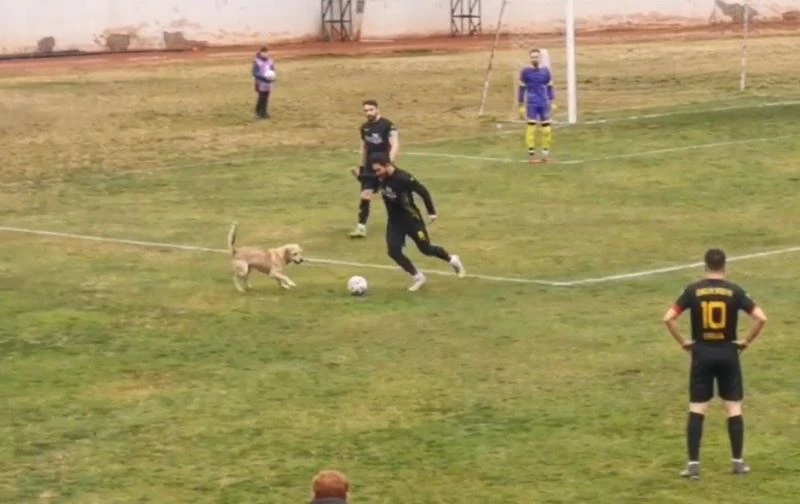 Tokat’ın Erbaa ilçesinde sahaya giren köpek maçı durdurdu. Bir süre topun peşinden koşturan köpeği sahadan çıkarmak kolay olmadı.