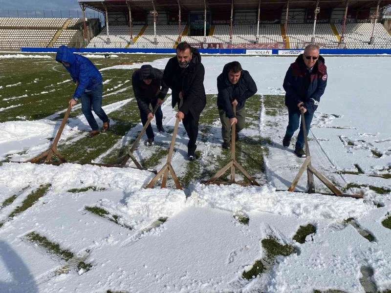 TFF 1.Lig ekiplerinden Bandırmaspor’da karla kaplanan 17 Eylül Stadyumu’nu kulüp yönetimi temizledi.