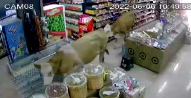 Reyonlar arasında dolanan 2 inek marketteki güvenlik kameralarına takıldı. Alışveriş yapan insanların arasında dolaşan inekleri görenler şaşkınlıklarını gizleyemedi.