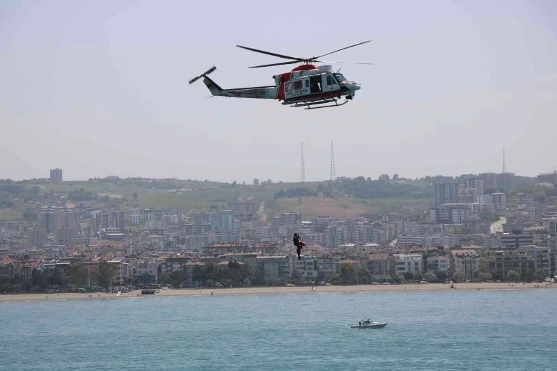 Samsun’da, Sahil Güvenlik Karadeniz Bölge Komutanlığı tarafından yapılan arama-kurtarma tatbikatı nefes kesti.