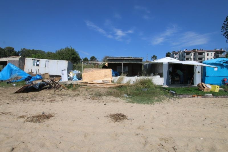 Sinop’ta sahil şeridi boyunca beton temeller üzerine kurulan çadır, baraka bungalov tarzı yapılar kaldırılıyor.