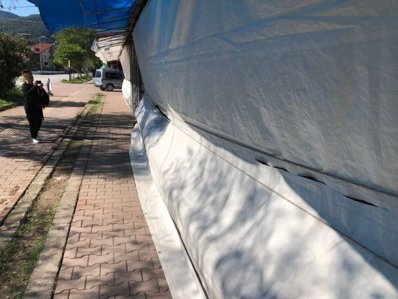 Öte yandan, bıçakla iş yerlerinin brandalarının kesilmesi ise güvenlik kamerasına yansıdı. Güvenlik kamerasında bıçakla, boydan boya brandaların kesildiği görülüyor.