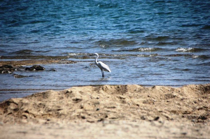 Tam kapanma nedeniyle sahiller büyük ölçüde boş kalınca "küçük ak balıkçıl" Muğla’nın Bodrum ilçesindeki Gümbet sahilini mesken tuttu.
