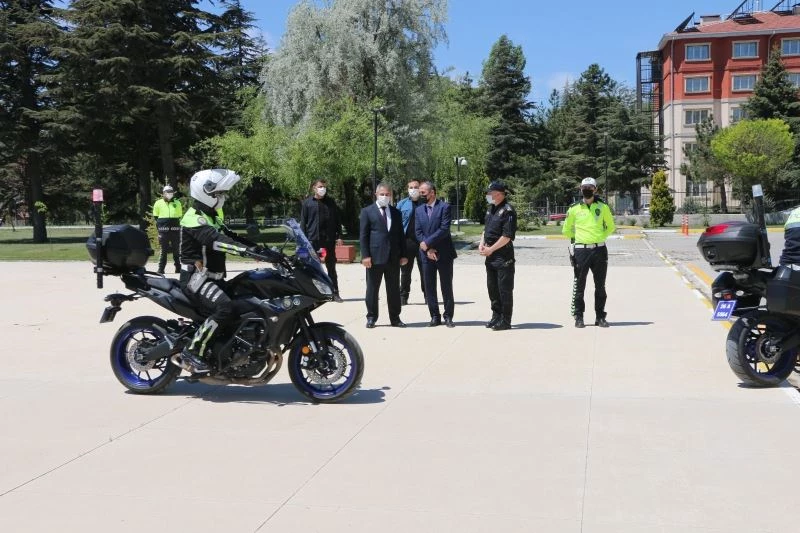 İl Emniyet Müdürlüğü bahçesinde motosiklet eğitimleri tamamlanan Trafik Denetleme ve Bölge Trafik Denetleme Şube Müdürlüklerinde görevli 2 personele İl Emniyet Müdürü Engin Dinç tarafından başarı belgesi takdim edildi. Ayrıca Trafik Denetleme Şube Müdürlüğü’nde görev alan Motosikletli Trafik Polisi Şahin timlerinde görevli olan ve “Motosikletli Trafik Sürüş Eğitimi“ alan 14 personele, eğitimi bitirdikleri için İl Emniyet Müdürü Engin Dinç tarafından sertifikaları verildi.