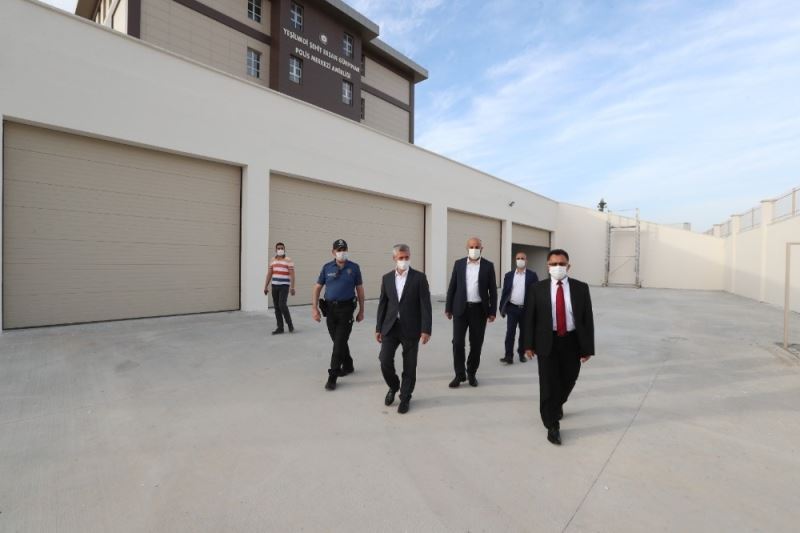 Gaziantep’te daha önce Karataş ve Düztepe mahallelerine yeni polis merkezleri kazandıran Şahinbey Belediye Başkanı Mehmet Tahmazoğlu, ilçenin asayişine önemli derecede katkı sağlayacak olana Yeşilvadi Şehit Ersan Gürpınar Polis Merkezi Amirliği’ni AK Parti Gaziantep Milletvekili Mehmet Sait Kirazoğlu ve AK Parti Şahinbey İlçe Başkanı Av. Hasan Teke ile birlikte inceleyerek bilgiler verdi.