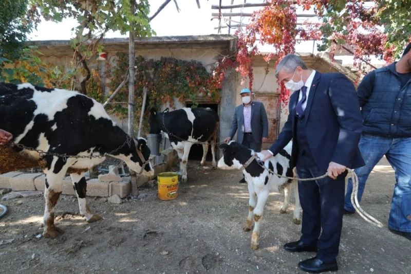 Şahinbey Belediye Başkanı Mehmet Tahmazoğlu büyükbaş ve küçükbaş canlı hayvan desteğinin yanı sıra hayvan yemi desteğinde bulunduğu aileleri ziyaret ederek, desteklerin devam edeceğini söyledi