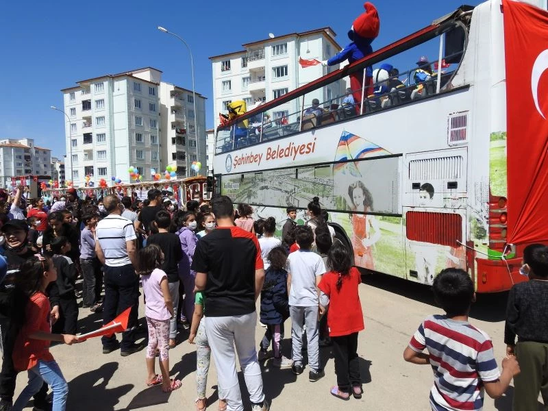 Şahinbey Belediyesi düzenlediği araç konvoyuyla mahalle mahalle gezerek 23 Nisan’da evde kalan çocuklara müzikler eşliğinde etkinlik düzenledi.