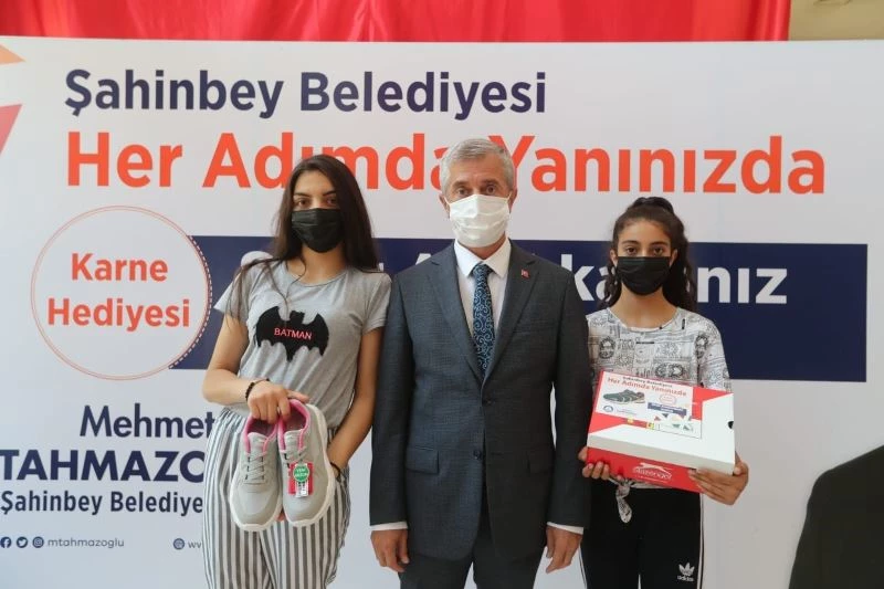 Şahinbey Belediyesi karne döneminin gelmesiyle birlikte öğrencilere spor ayakkabısı hediye etme geleneğini bu yıl da sürdürüyor. Bu yıl 150 bin öğrenciye spor ayakkabısı dağıtan Şahinbey Belediye Başkanı Mehmet Tahmazoğlu, daha önceki dört yıl boyunca 545 bin 800 adet spor ayakkabısı hediye etmişti.