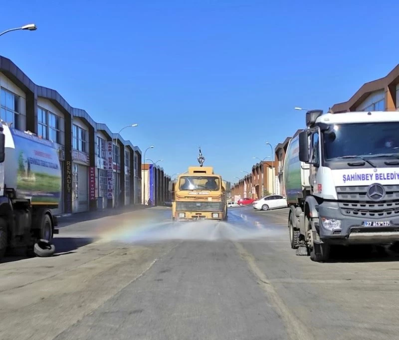 Sabahın erken saatlerinde araç ve ekipmanlarıyla birlikte ilçe sınırlarında yer alan cadde ve sokaklarda çevre ve görüntü kirliliği oluşturan tüm noktalarında hummalı bir çalışma gerçekleştiren Şahinbey Belediyesi Temizlik İşleri Müdürlüğü ekipleri, ilçeyi baştan aşağı temizliyor. Ekipler sabahın erken saatlerinden itibaren başlayarak yürüttüğü çalışmalarda ilçe sınırları içerisindeki çöpleri toplamanın yanı sıra sokaklar ve caddeler, tazyikli suyla yıkanarak temizleniyor.
