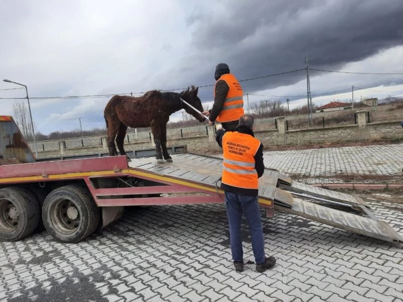 İstasyon Mahallesinde terkedilmiş ve güçten düşmüş bir şekilde sahipsiz bir atın dolaştığını gören vatandaşlar durumu Akşehir Belediyesi’ne ihbar etti. Akşehir Belediyesi veterineri eşliğinde atın bulunduğu yere giden ekipler, açlıktan ve yorgunluktan güçsüz düşmüş hayvanı araca yükleyerek Akşehir Hayvan Pazarı’ndaki kapalı bölümde tedavisine başladı.
