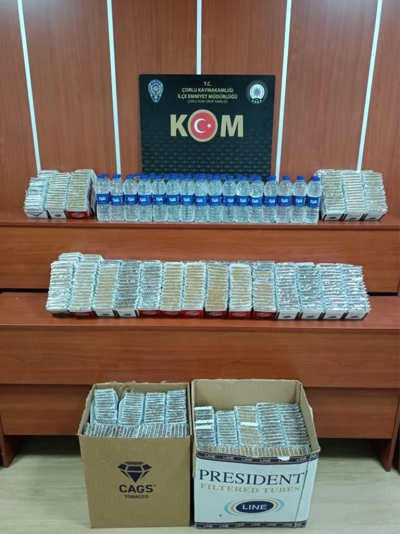 Tekirdağ’ın Çorlu ilçesinde 4 kişinin zehirlenmesi şüphesiyle hastaneye kaldırılması üzerine polis ekipleri inceleme başlattı. Zehirlenen 4 kişinin bir büfeden aldıkları alkolden sonra fenalaştıkları öğrenilmesi üzerine polis ekiplerince Çorlu ilçesine bağlı Hıdırağa Mahallesindeki söz konusu işletmeye operasyon düzenlendi. Operasyonda, 27 litre sahte alkol olduğu değerlendiren içki, 29 bin 940 adet içi kıyılmış tütünle doldurulmuş makaron ele geçirildi.