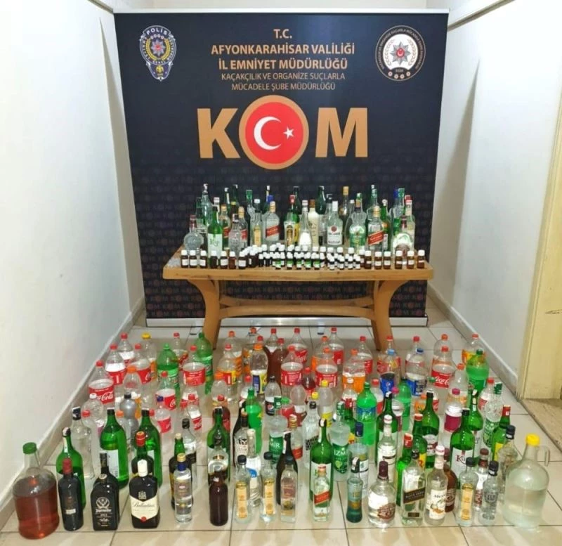 Afyonkarahisar İl Emniyet Müdürlüğü ekipleri tarafından yapılan çalışmalar sonucu kent merkezinde kaçak ve sahte içki üretimi yaparak piyasaya sattıkları değerlendirilen 3 şahsa yönelik operasyon düzenlendi. Operasyon kapsamında 3 şüpheli şahıs yakalanırken, şahısların ev ve iş yerlerinde yapılan aramalarda 143 adet çeşitli marka ve türlerde alkollü içecek ve 71 adet alkol yapımında kullanılan kit, ele geçirildi. Yakalan 3 şüpheli şahsa adli işlem yapıldığı bildirildi.