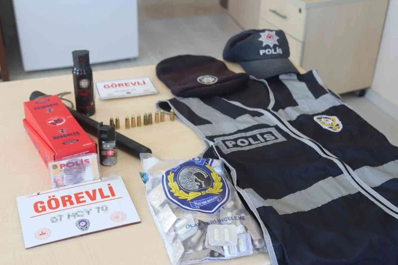 İl Emniyet Müdürlüğünden yapılan açıklamaya göre, Anamur ilçe Emniyet Müdürlüğü ekipleri, durumundan şüphelendiği bir aracı durdurarak, arama yaptı. Yapılan aramada 1 adet emniyet amiri adına düzenlenmiş Emniyet Genel Müdürlüğü sahte personel kartı, 2 adet üzerinde polis amblemi olan sahte taşıt tanıma kartı, 10 adet tabanca fişeği, 1 cop, 1 polis yeleği, 1 polis şapkası, 1 polis beresi, 10 büyük boy ve 1 küçük boy olmak üzere 2 adet biber gazı ve toplamda 174 adet cinsel güç artırıcı özellikli hap ele geçirildi.